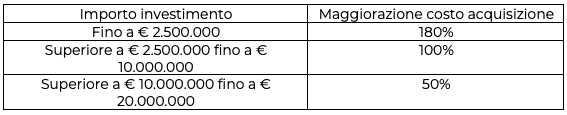 La maggiorazione del costo di acquisizione è riconosciuta per gli investimenti: